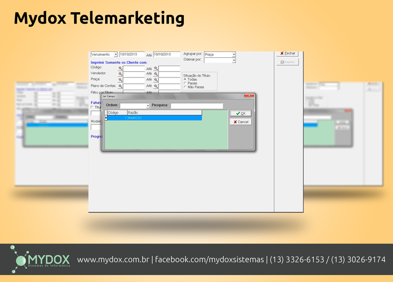 A prospecção e as vendas de sua empresa vãi ficar bem mais ágeis e dinâmicas com o Mydox Telemarketing, um poderoso software de gestão que tornará o seu pós atendimento muito mais eficiente. Se sua empresa está buscando uma ferramenta eficiente para a prospecção de novos clientes você chegou ao lugar certo.